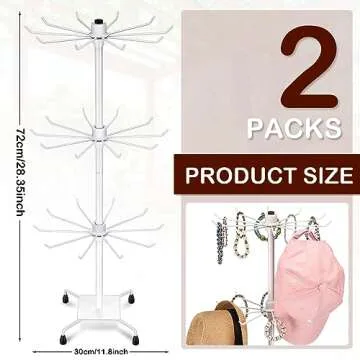 BBTO 2 Pcs Rotating Display Stand Jewelry Display Rack with Hooks Metal Earrings Display Stands for Selling Necklace(White,28.35 x 11.81 Inch)