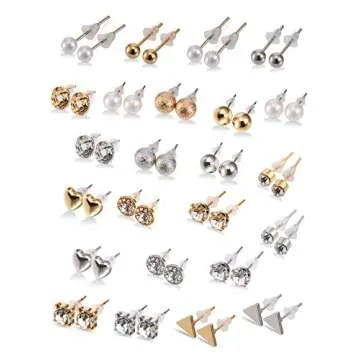 This set includes a total of 24 pairs of stud earrings in various styles.