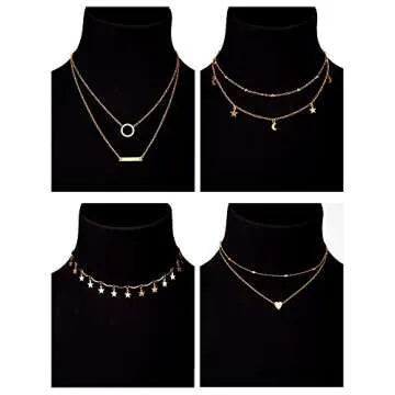 BBTO 4 Pieces Layered Pendant Choker Necklace Gold Layering Chain Choker for Women Girls (Style A)