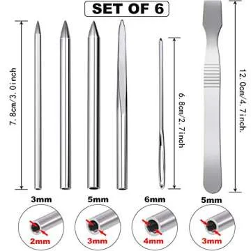 BBTO 6 Pieces Paracord Stitching Set 6 Sizes Paracord FID Lacing Stitching Needles Smoothing Tool Lacing Leathercraft Needle Silvery