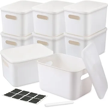Show moreIntroducing the BBTO 8 Pcs White Plastic Storage Bins with Lids—a must-have solution for anyone looking to declutter their space while adding a touch of elegance. Measuring 10.2 x 7.3 x 6.5 inches (26 x 18.5 x 16.5 cm), these bins are perfectly sized for an array of organizational needs, from toys and books to snacks and cosmetics. Crafted by a leading industry brand, they perfectly encapsulate practicality without compromising on style. The pristine white finish brings a modern flair, making them an aesthetically pleasing addition to any room.