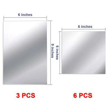 BBTO 9 Pieces Adhesive Craft Mirrors 6 x 9 Inches, 6 x 6 Inches Acrylic Mirror Tiles Small Rectangular Stick on Flexible Self Adhesive Non Glass Plastic Mirror Wall Stickers