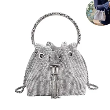 BBTT.ful Handbag, Sparkling Rhinestone Bucket Bag for Women & Girls, Large Crossbody Purse for Party, Wedding, Prom, Evening, Silver