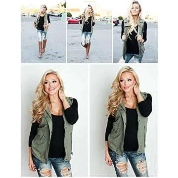 BBX Lephsnt Women's Front Zipper Solid Utility Anorak Hoodie Vest Green Large