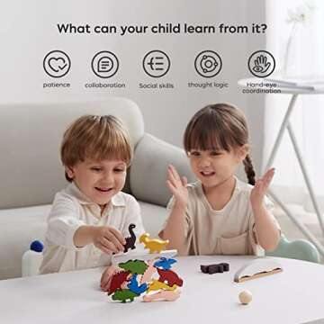 Show more Introducing the bc babycare Dinosaur Wooden Stacking Blocks, the perfect combination of fun and learning for children aged 3-5 years! This exciting set features 12 vibrant dinosaur building blocks, a smooth wooden ball, a balance beam, and a sturdy detachable wooden base, creating endless possibilities for playful exploration and developmental growth. With 5 unique stacking methods, children can quickly master stacking skills, progressing from beginner to more challenging levels. These excellent quality wooden toys are designed not just for preschoolers but are suitable for children of all ages, making them a versatile gift option!