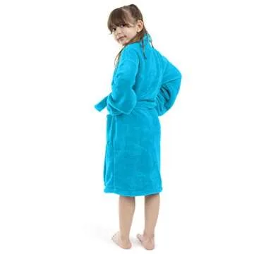 BC BARE COTTON Kids Microfiber Fleece Shawl Robe - Girls - Turquoise - Large