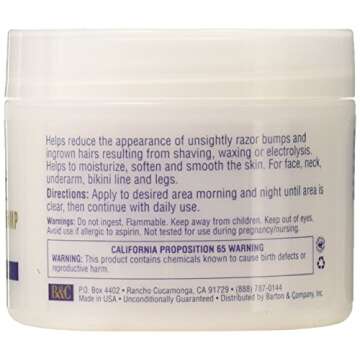 Show moreIntroducing a skincare innovation that is poised to revolutionize your grooming routine: the premium ingrown hair and razor bump cream, model number 5581. Packed into a sleek and practical container, this cream is your trustworthy ally against the discomfort of razor bumps and ingrown hairs. Users have praised its superior effectiveness, especially when transitioning from traditional liquid solutions that often leave skin feeling dry and irritated. With ingredients carefully selected to deliver results, this cream not only helps clear existing bumps but also works to prevent future occurrences.