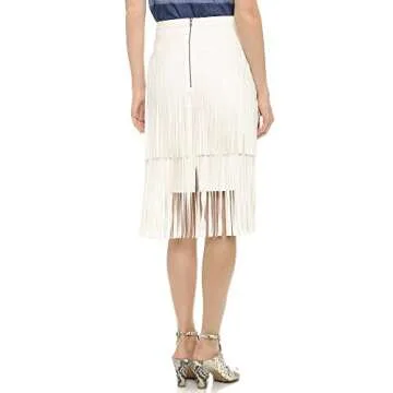 Show moreIntroducing the BCBGMAXAZRIA Women's Rashell Fringe Pencil Skirt, a stunning and sophisticated addition to your wardrobe! Crafted with a unique design that includes a curved band waistline and two tiers of long, elegant fringe, this skirt is perfect for making a fashion statement. The exposed center back two-way zipper closure not only enhances the aesthetic appeal but also ensures a tailored fit that flatters your silhouette. Made from high-quality materials, this skirt offers both style and comfort, making it suitable for various occasions.