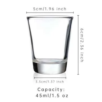 Show moreIntroducing the perfect addition to your barware collection: a set of 10 stunning shot glasses that combine timeless elegance with practicality. Each glass features a heavy solid glass base, expertly designed to ensure stability and prevent tipping or spilling. Whether you're pouring whiskey, tequila, vodka, or even desserts, these shot glasses will elevate your drinking experience for every occasion. With a height of 2.25 inches and a diameter of 2 inches at the top, each glass holds 1.5 ounces, making them ideal for serving various beverages and treats.