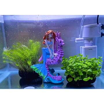 Show moreIntroduce a touch of enchantment to your aquatic environment with the BCSIUHD Aquarium Ornament - Seahorse Mermaid Decorations. This beautiful piece showcases a stunning mermaid princess gracefully poised on a lively seahorse, gazing longingly across the sea. Crafted from high-quality resin, this ornament boasts a vibrant design that beautifully captures the whimsy and elegance of underwater life. It not only enhances the aesthetic appeal of your fish tank but also complements your home decor in various settings, making it a perfect conversation starter and decorative asset.