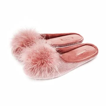 Show moreThe CUTE & ELEGANT SLIPPER is the ultimate combination of style and comfort! Crafted with fluffy pom pom feathers, these slip-on style slippers exude a trendy and chic appearance that will elevate your loungewear. Perfectly pairing with pajamas, robes, and sleepwear, these slippers are more than just a cozy accessory; they are a fashion statement. Made from premium quality materials, the slippers feature a soft and breathable velvet upper that ensures your feet stay dry and comfortable, no matter the season. The plush fleece lining wicks away moisture, offering a delightful feeling against your skin all day long.
