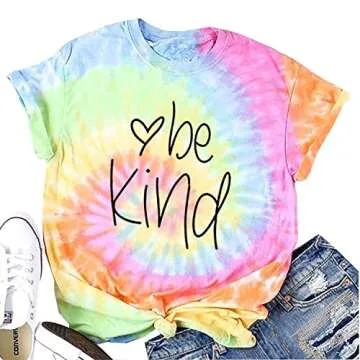 Be Kind Shirt for Women Tie Dye T Shirts Bee Kind Short Sleeve Graphic Tees Tops (Tie Dye, Large)