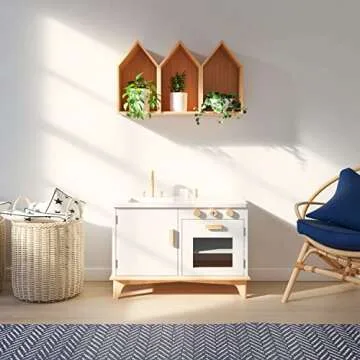 Be Mindful Play Kitchen for Boys and Girls in White and Natural