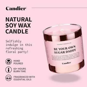 While other candles may lack personality, the Be Your Own Sugar Daddy Candle stands out with its clever messaging and unbeatable scent profile. Unlike many competitors that might prioritize production speed over quality, our candles are handcrafted to ensure the best burning experience. The superior blend of essential oils and high-quality soy wax means our fragrances not only fill your space longer, but also do so without the harmful substances that might be found in mass-produced candles. This dedication to excellence makes us the go-to choice for discerning candle lovers.