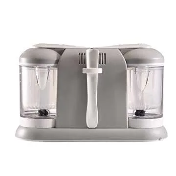 Show more Introducing the **BEABA Babycook Duo 4 in 1 Baby Food Maker**, the world's very first and best-selling baby food maker! This innovative machine is designed for busy parents who want to create fresh, healthy meals for their little ones without the hassle of multiple cooking tools. With its sleek cloud design, this baby food processor steams, blends, defrosts, and reheats all in one machine, revolutionizing the way you prepare baby food. Thanks to its generous 9.1 cup capacity, you can batch cook meals for your child, ensuring you always have nutritious food ready to go.