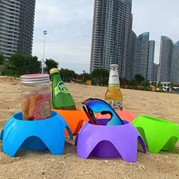 Beach Cup Holders Accessories for Vacation - FRSHALOUIS Beach Stuff Gift Picnic Supplies Beach Coasters Drink Cup Holders(5 Pack)