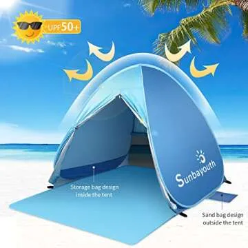Beach Tent, Sunba Youth Beach Shade, Anti UV Instant Portable Tent Sun Shelter, Pop Up Baby Beach Tent, for 2-3 Person