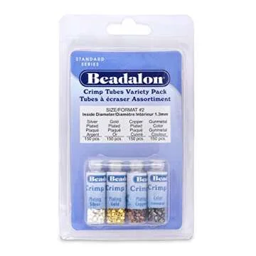 Show moreIf you're a jewelry maker seeking top-notch quality and variety, Beadalon Crimp Tubes VP Size 2 (600 pieces) are a must-have addition to your crafting toolbox. This comprehensive set includes 600 crimp tubes in four stunning colors: Silver Plated, Gold Plated, Copper Plated, and Hematite color. Each color features 125 individual crimp tubes in size 2, measuring 1.3mm long and 0.50mm in diameter, making them ideal for securing wire and enhancing the beauty of your jewelry designs. The Beadalon brand is renowned for its commitment to quality and this selection is no exception—crafted to provide durability and aesthetic appeal, ensuring that your jewelry not only looks professional but stands the test of time.