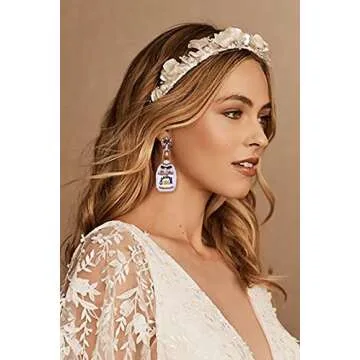 Show more Introducing the exquisite Beaded Champagne Earrings, a stunning accessory that radiates a playful sense of ease and exquisite elegance. These signature earrings, designed with a classic champagne bottle silhouette, are meticulously crafted to stand out. Adorned with delicate crystal and sequins detailing, they promise to elevate any wardrobe. Whether you're pairing them with cozy knits or dressing up for an evening event, these earrings will complement your outfit effortlessly.