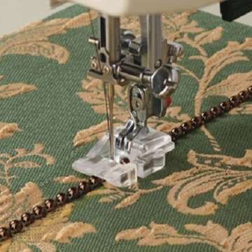 With its narrow design, the Beading Foot allows for easier handling of beads, inspiring you to explore dimension and texture in your fabric creations. Its innovative construction ensures that beads are perfectly aligned and securely attached, allowing for smooth, stylish finishes that capture attention. This foot is compatible with a range of Janome models, making it an essential addition to your sewing toolkit.