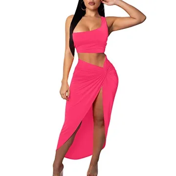 Show moreIntroducing the BEAGIMEG Women's Sexy One Shoulder Long Bodycon Slit Skirt 2 Pieces Dress in Fluopink, a sensational outfit that perfectly embodies modern chic. Crafted from a high-quality blend of 85% Polyester and 15% Spandex, this dress boasts remarkable stretch and elasticity for a comfortable yet flattering fit tailored to enhance every body type. Whether you're pairing it with a sleek jacket for a dinner date or standing out at a summer festival, this two-piece dress is a must-have in your wardrobe. The piece features an asymmetrical hem and eye-catching side slit that adds a sultry edge, making it the ideal choice for occasions when you want to turn heads and feel confident.
