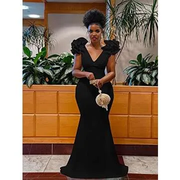 Show moreIntroducing the BEAGIMEG Women's Sexy Ruffle Sleeve Elegant V Neck Backless Evening Formal Maxi Dress in a stunning black, a perfect blend of elegance and sophistication designed specifically for those special formal occasions. This captivating dress features a flattering V neck that beautifully accentuates your silhouette, while its alluring backless design adds a touch of boldness that’s sure to turn heads. The ruffle sleeves offer an exquisite feminine touch, making it a standout piece that ensures you'll be the center of attention. Crafted from high-quality materials, this maxi dress embraces your curves in all the right places, providing a stretchy yet comfortable fit, ideal for galas, weddings, or even a chic night out. Elevate your wardrobe with this remarkable piece that promises to leave a lasting impression.