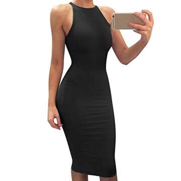 BEAGIMEG Womens Spaghetti Strap O Neck Bodycon Midi Club Party Dress Black, Black, Large