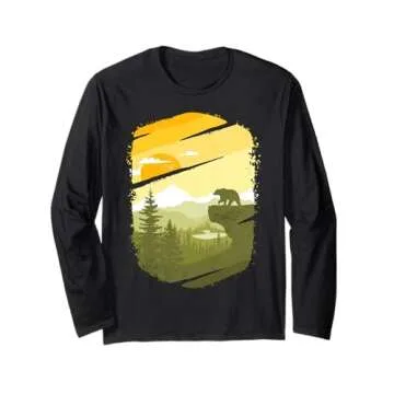 Bear Nature Graphic Green Long Sleeve T-Shirt
