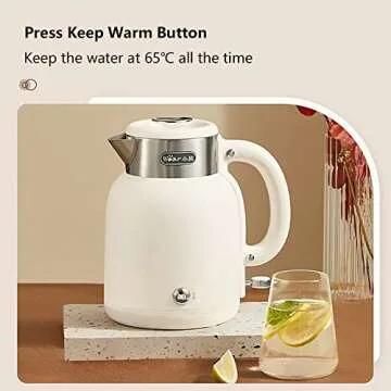 Equipped with a powerful 1500W heating element, the Bear Kettle brings water to a boil in a matter of minutes, ensuring quick and efficient service. One simple press of the heating button grants you the luxury of steaming hot water whenever you desire. But what sets this kettle apart is its unique keep warm function, which expertly maintains your water temperature at a cozy 65°C, allowing you to enjoy multiple cups throughout the day without needing to reheat.