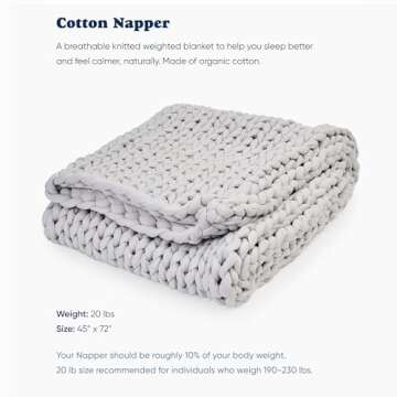 Introducing the Bearaby Cotton Napper, your cozy sanctuary designed to transform your sleep experience into a restorative escape. This carefully crafted 100% organic cotton weighted blanket is not just a treat for your senses—it’s also eco-friendly, as it carries the OEKO-TEX Standard 100 certification. Revel in its gentle embrace that feels like a comforting hug, helping to ease anxiety and anxiety-driven thoughts. Whether you're unwinding after a hectic day or looking to improve your...