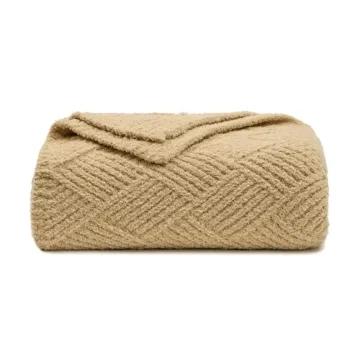 bearberry Super Soft Rhombic Throw Blanket 3D Jacquard Lightweight Cozy Warm Throw Blankets for Couch Bed Sofa All Season (Camel, 50”x60”)