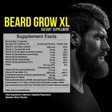Beard Grow XL - Vegan Hair Growth Supplement for a Faster, Thicker, Fuller Beard - Enhances Your Grooming Kit