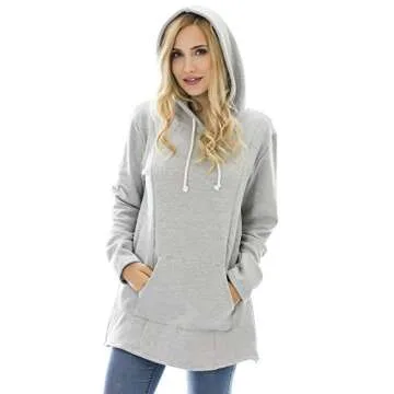 Bearsland Women's Winter Sporty Hoodie Breastfeeding Nursing Top,Gray,X-Large