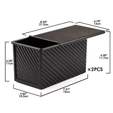 Beasea Pullman Loaf Pan with Lid, 2 Pack Non-Stick Black Bread Loaf Pans for Homemade Bread 1 lb Carbon Steel Bread Toast Box with Cover for Bakeware Bread Toast Oven Baking