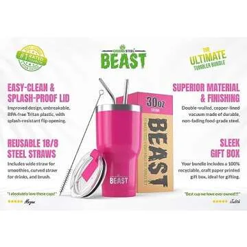 Beast 30 oz Tumbler Stainless Steel Vacuum Insulated Coffee Ice Cup Double Wall Travel Flask (Cupcake Pink)