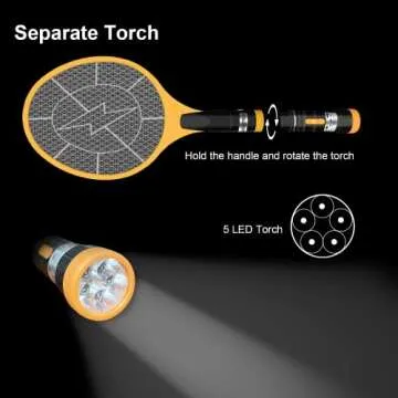 Designed for convenience, it features fast USB charging, so you can easily power up your swatter using any USB device. No more battling with dead batteries—just plug it in and get ready to zap those bugs away! The super bright LED light ensures you can eliminate insects at any time of day, making it a reliable companion for your pest control needs, day or night.