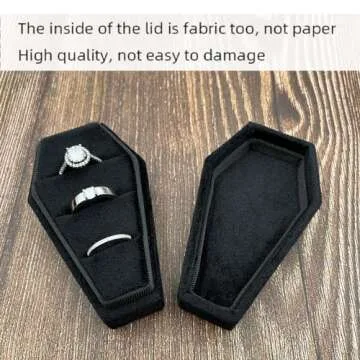 Beatilog Gothic Coffin Ring Box 3 Slots - Premium Handmade Velvet Wedding Engagement Three Rings Bearer Holder Triple Vintage Proposal Organizer for Ceremony Halloween Christmas Goth Party (Black)