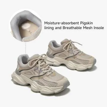 Show moreIntroducing the BEAU TODAY Chunky Platform Sneakers for Women – the perfect blend of retro style, unmatched comfort, and versatile functionality. Crafted with a premium pig suede and mesh upper, these sneakers provide exceptional breathability and luxurious softness. Whether you're strolling through the park or heading out for brunch with friends, these shoes are designed to keep your feet feeling free and fresh.