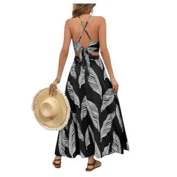Introducing the **BEAUDRM Women's 2 Piece Outfits** – the ultimate vacation must-have! This **tropical print beach outfit** features a stunning combination of a tie cami crop top and a flowing split maxi skirt that’s perfect for both sunny beach days and elegant evenings. Crafted from breathable, skin-friendly fabric, this set is designed for maximum comfort, ensuring you not only look fabulous but feel great too. With its unique criss-cross and backless design, it exudes a chic boho vibe that can easily...