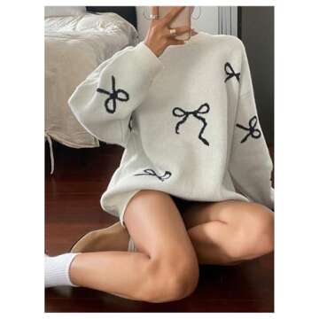 Features: Bow print, round neck, long sleeve, loose, fashionable, casual sweaters