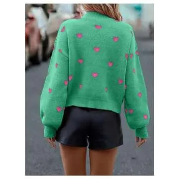 BEAUDRM Women's Bow Print Sweater Long Sleeve Mock Neck Drop Shoulder Knit Pullover Sweaters Green Large