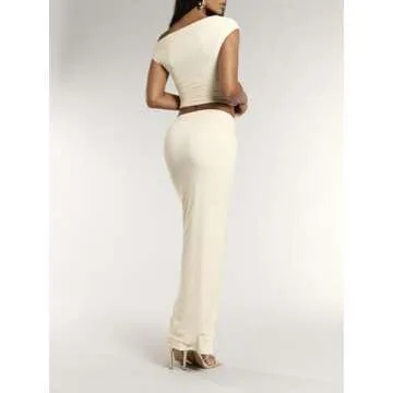 Features: 2 piece outfits for women, elegant skirt set, asymmetrical neck top and skirt set, crop top and bodycon skirt