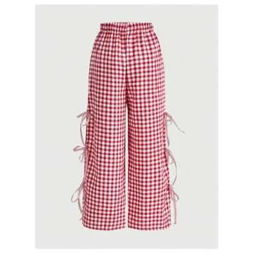 Stylish BEAUDRM Women's Gingham Print Long Pants with Side Knots