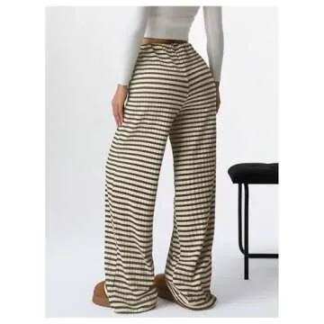 Show moreStep into comfort and style with the BEAUDRM Women's Striped Pants. Designed to enhance your casual wardrobe, these elastic waist knit pants are crafted from a breathable, soft, and skin-friendly fabric that offers exceptional stretch, providing you with maximum comfort throughout the day. The striking striped pattern adds a fashionable flair, perfect for embracing that y2k style. Whether you're lounging at home or heading out for a casual day of errands, these wide-leg pants ensure you look effortlessly chic while feeling relaxed.