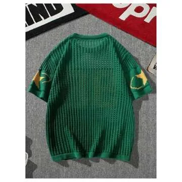 BEAUDRM Women's Y2K Jersey Shirts Oversized Number Crochet Hollow Out Jersey Tee Sweater Crew Neck Short Sleeve Knit T Shirts Green Large