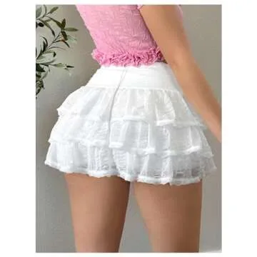 Design: Elastic waist, bow decor, layered hem, mini skirts, solid color, cute style, coquette