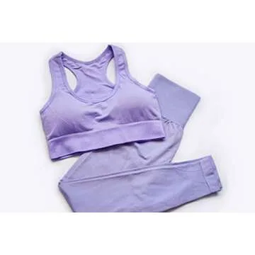 Beaufident Women Workout Set Active 2 Pieces Tracksuit Yoga Leggings with Paded Sports Bra Gym Outfits Purple Ochid