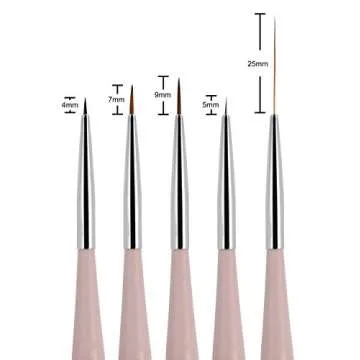 Beaute Galleria 5 Pieces Nail Art Brush Set with Liners (4mm, 7mm, 9mm) Striping Brushes (5mm, 25mm), for Thin Fine Line Drawing, Detail Painting, Striping, Blending, One Stroke