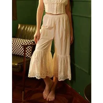 BEAUTELICATE Vintage Cotton Pettipants Culotte Slip Cropped Sleepwear Pants with Lace Edge