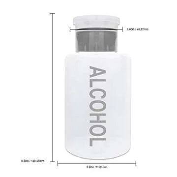 Show moreIntroducing the **Beauticom 12 Oz Alcohol Labeled Liquid Push Down Pump Dispenser**, the ultimate solution for dispensing your favorite liquids with ease and efficiency. This single piece dispenser boasts a sophisticated Gray cap that not only looks stylish but is also highly functional. Crafted from special plastic material, it excels in corrosion resistance, allowing you to store various liquids such as alcohol, acetone, skin lotions, and even nail polish remover without worry. With dimensions of 2.47 inches by 5.75 inches, it provides ample space to hold up to **12 fluid ounces** of liquid while maintaining a compact design that fits perfectly on any bathroom or kitchen counter. Its wide opening at the top allows for easy refilling, ensuring you never run out of your essential liquids, while the swing top lid effectively prevents any leaks or odors from escaping.